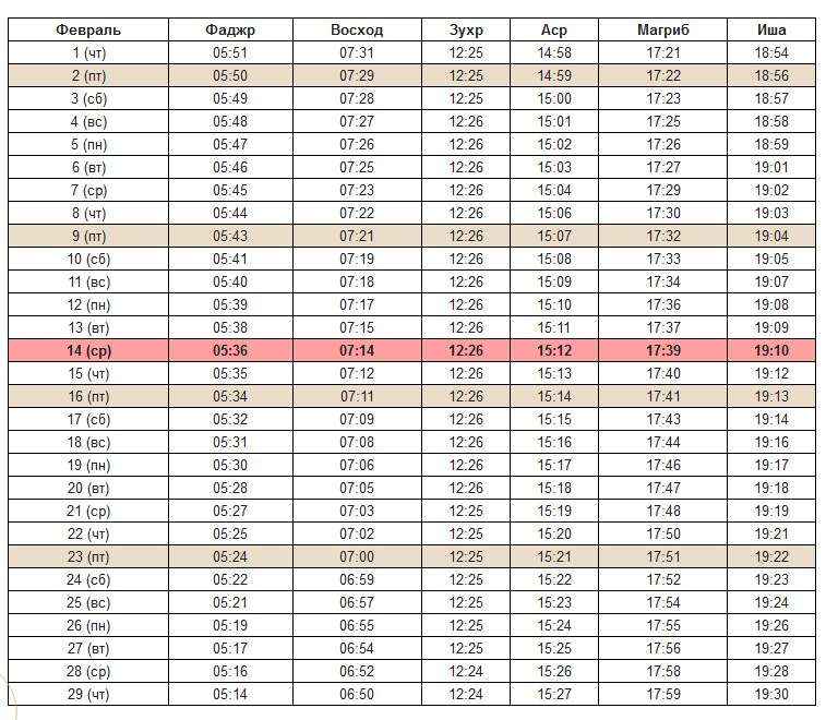 Расписание намазов на февраль 2024-1